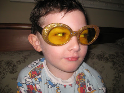 Well, he hums is a little more like it, sometimes the Doodle gets a little vocal and it seems like he's trying to sing or caw. The sparkly gold glitter glasses are just to help him get in the mood. Sometimes when you pick him up and he's happy to see you, he will coo like a dove. Maybe he has a future in bird calling?